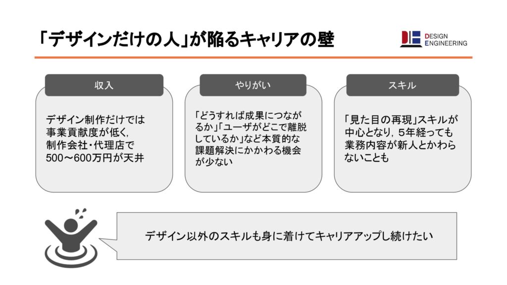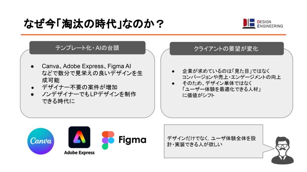 デザインスキルだけでは厳しい時代。コーディングを含む技術力を持つことで生き残れる理由を解説。危機感を持ちつつ、どうキャリアをシフトすればいいかを提案する刺激的な内容です。
