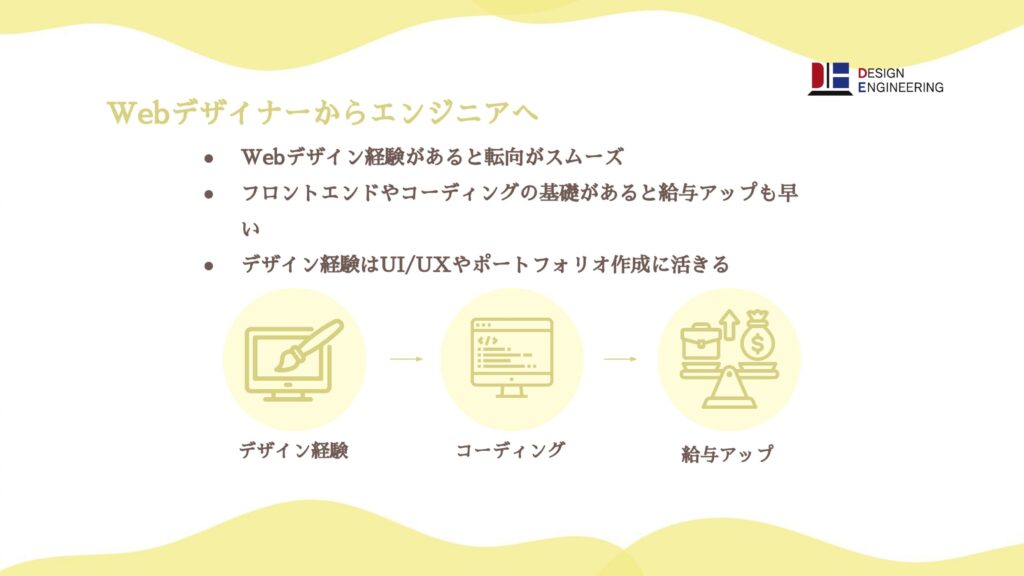 お役立ち資料 【資料ダウンロード】075_知らなきゃ損!Webデザイナーが知るべき給与事情 2025.11.02 転向前後の給与差や未経験者のスタート給与、スキルレベル別の平均年収を整理。初学者でも理解しやすく、エンジニア転向で得られる収入の現実を解説します。 ↓↓試し読みはこちら↓↓ 続きはこちら! 資料ダウンロード(無料) 【資料ダウンロード】071_デザインからコードへ!最短で給与爆上げルート公開 前の記事